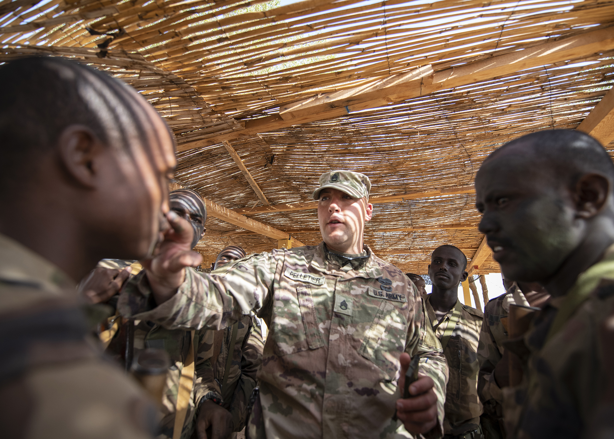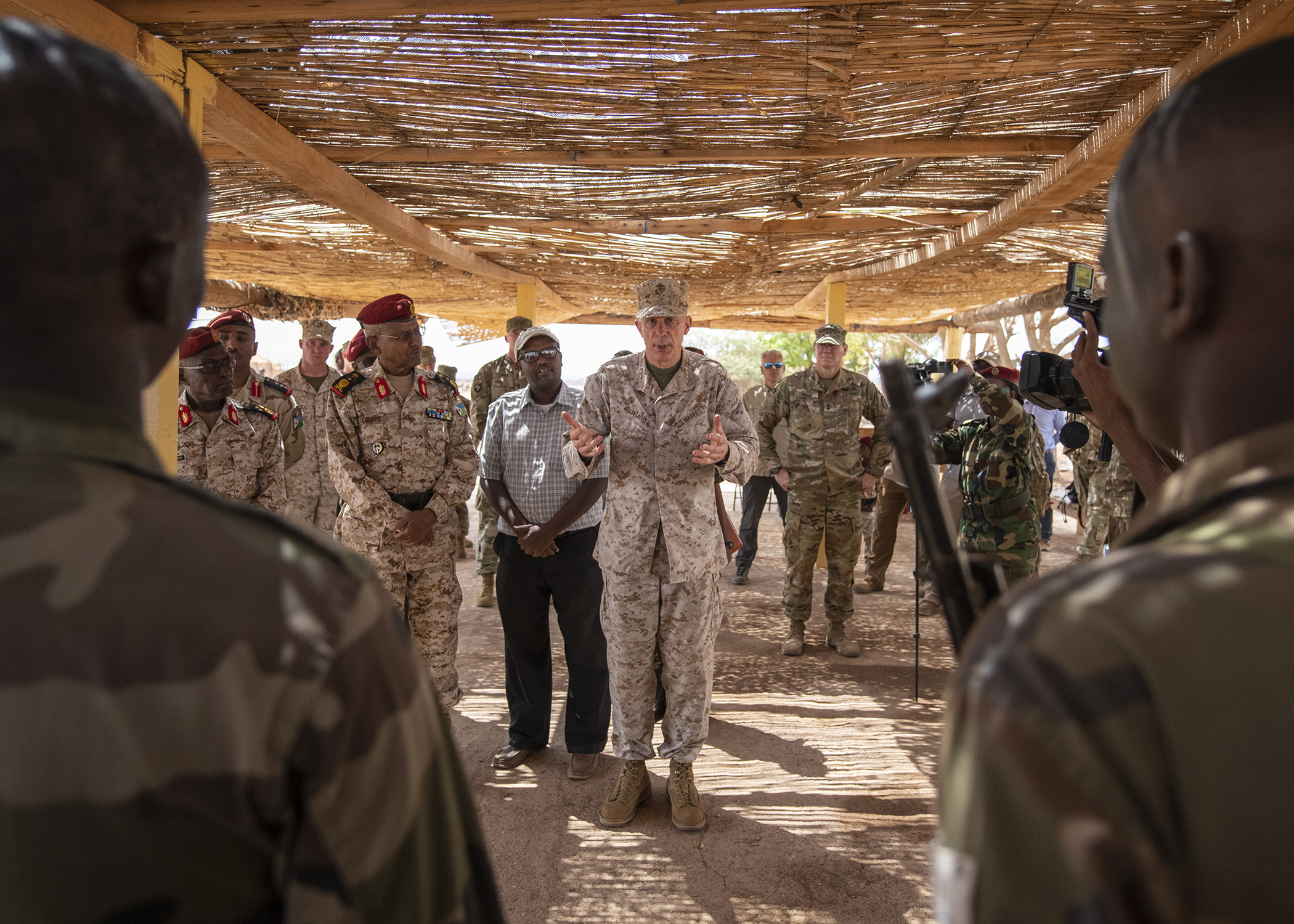 Stephen townsend, commander, africa command (africom), speaks to service members during his trip the head of u.s.